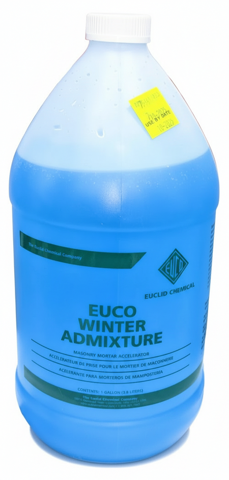 EUCO WINTER ADMIXTURE is used in mortar to lay brick, block, structural clay tile and glass block to eliminate the dangers connected with freezing mortar joints.
